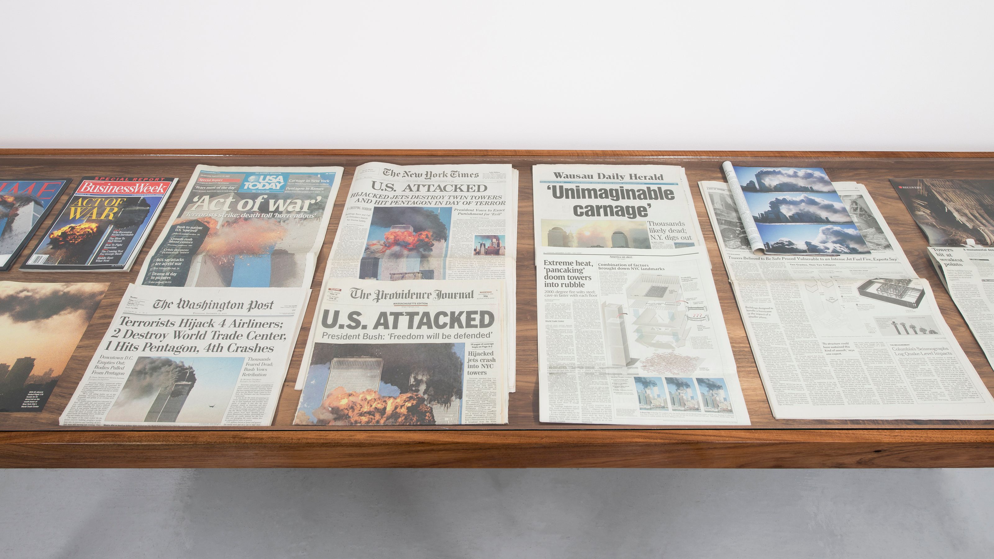 Melting Pots is a project that examines the cycle of transformation that some of the metal debris of the World Trade Centre in New York was submitted to after the terrorist attack of September 11, 2001, to produce pots, pans and serving trays, by crockery companies in India. This piece follows the transformation of this significant material through found images, posters, maps, memorabilia, a video and ends with food served in the kitchenware conceivably made from this debris.