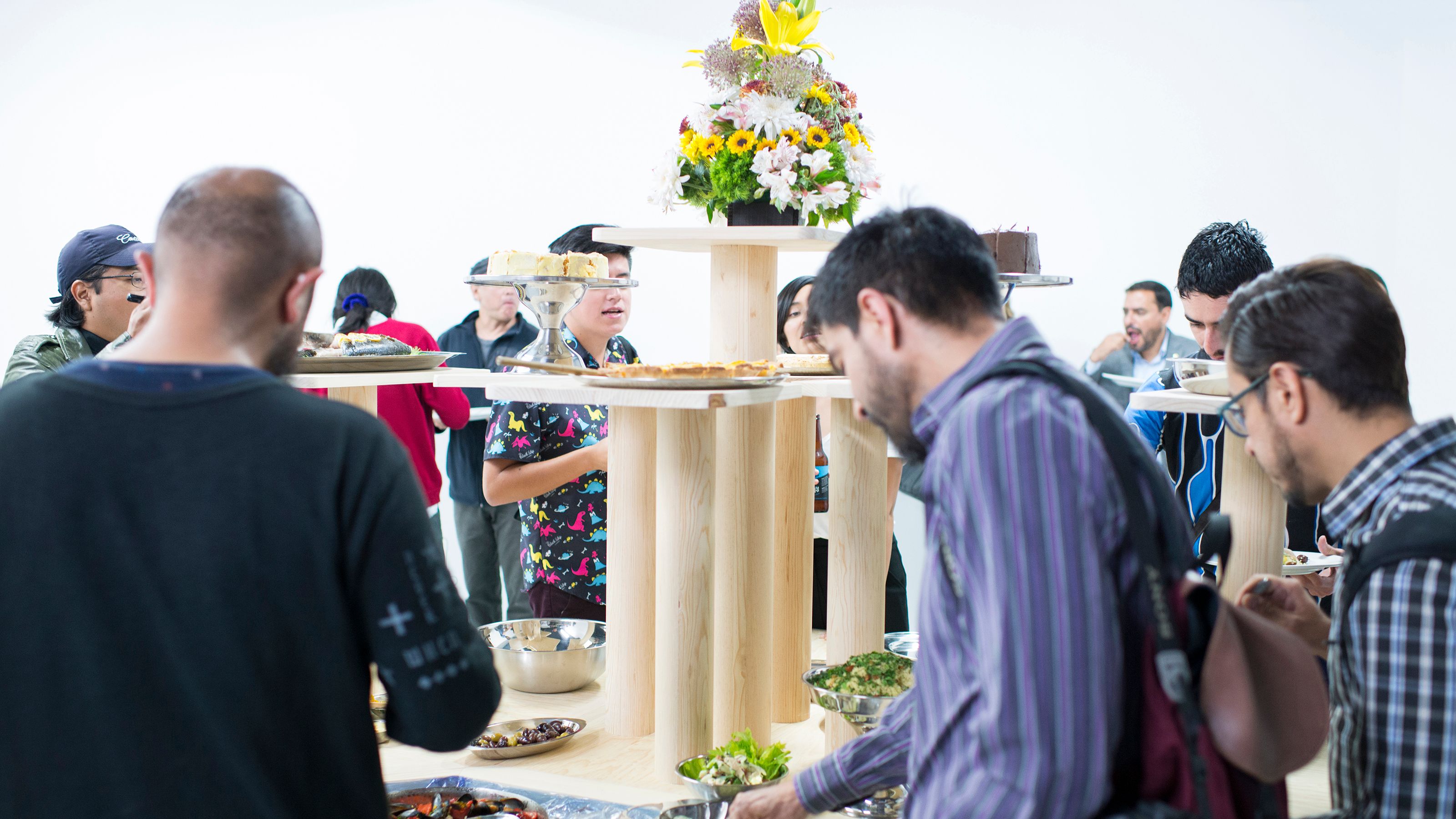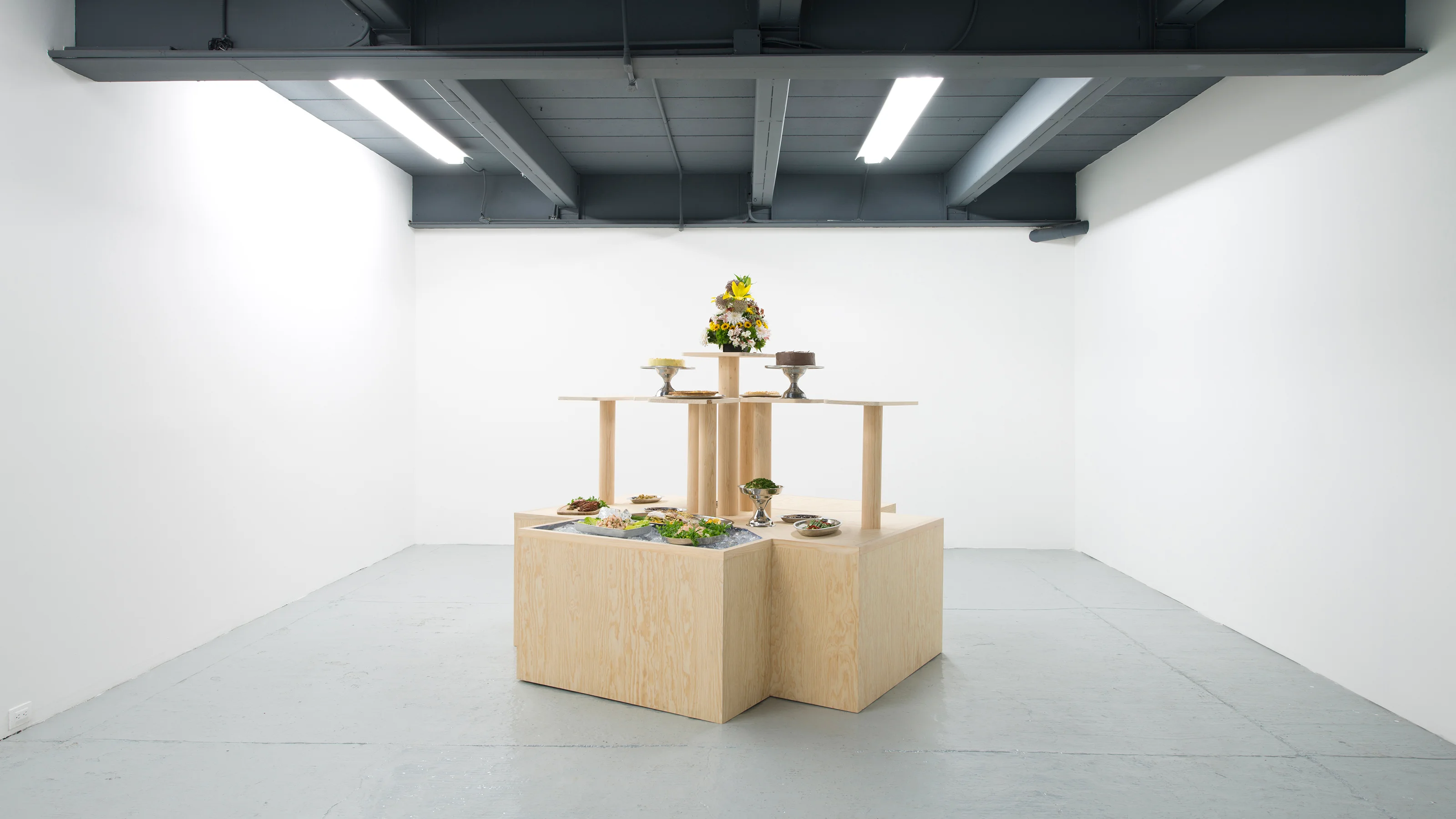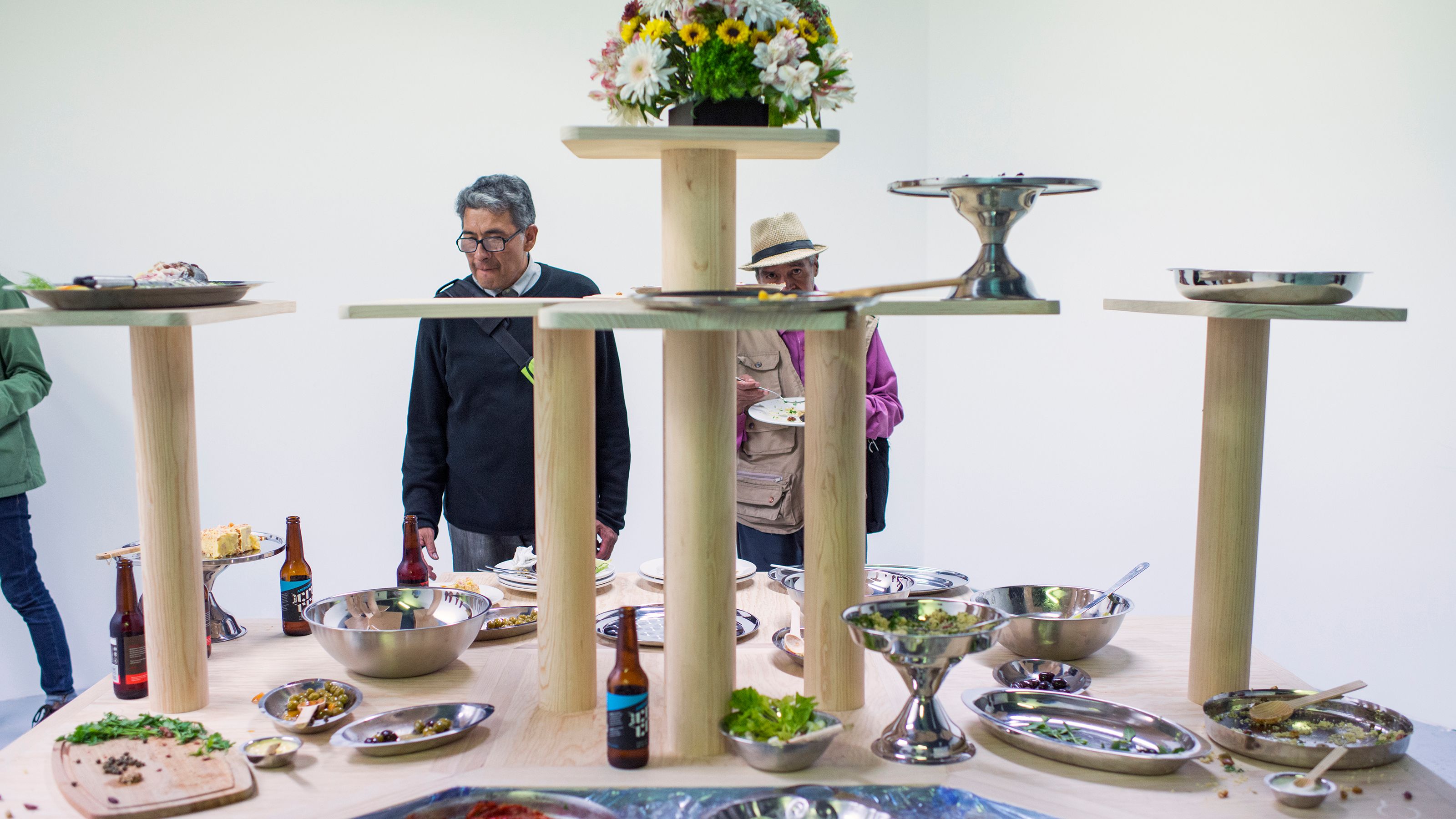 **Every time this work is exhibited the buffet is prepared in collaboration with a local chef. The remains of the meal are left to decay until the end of the show.