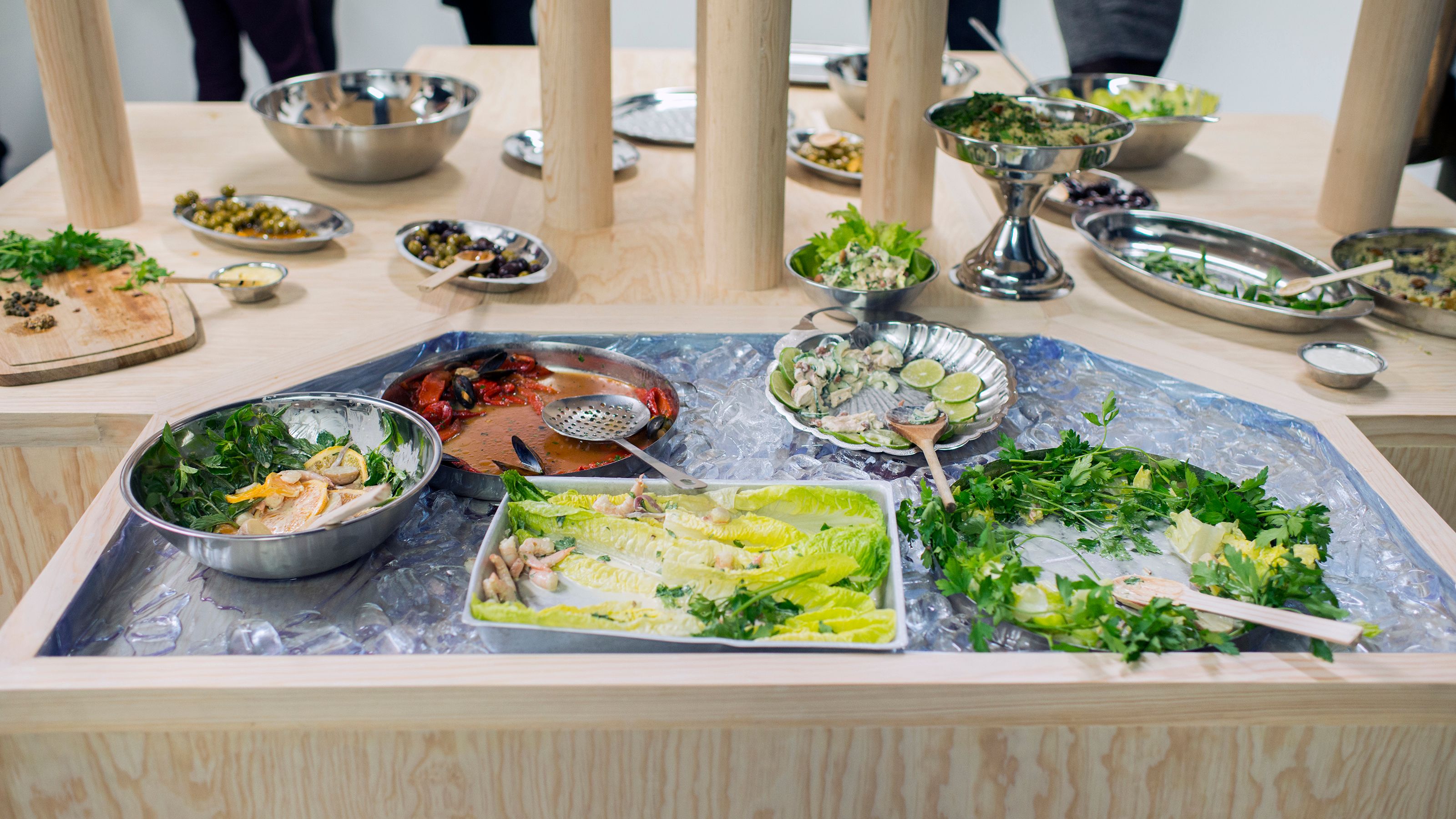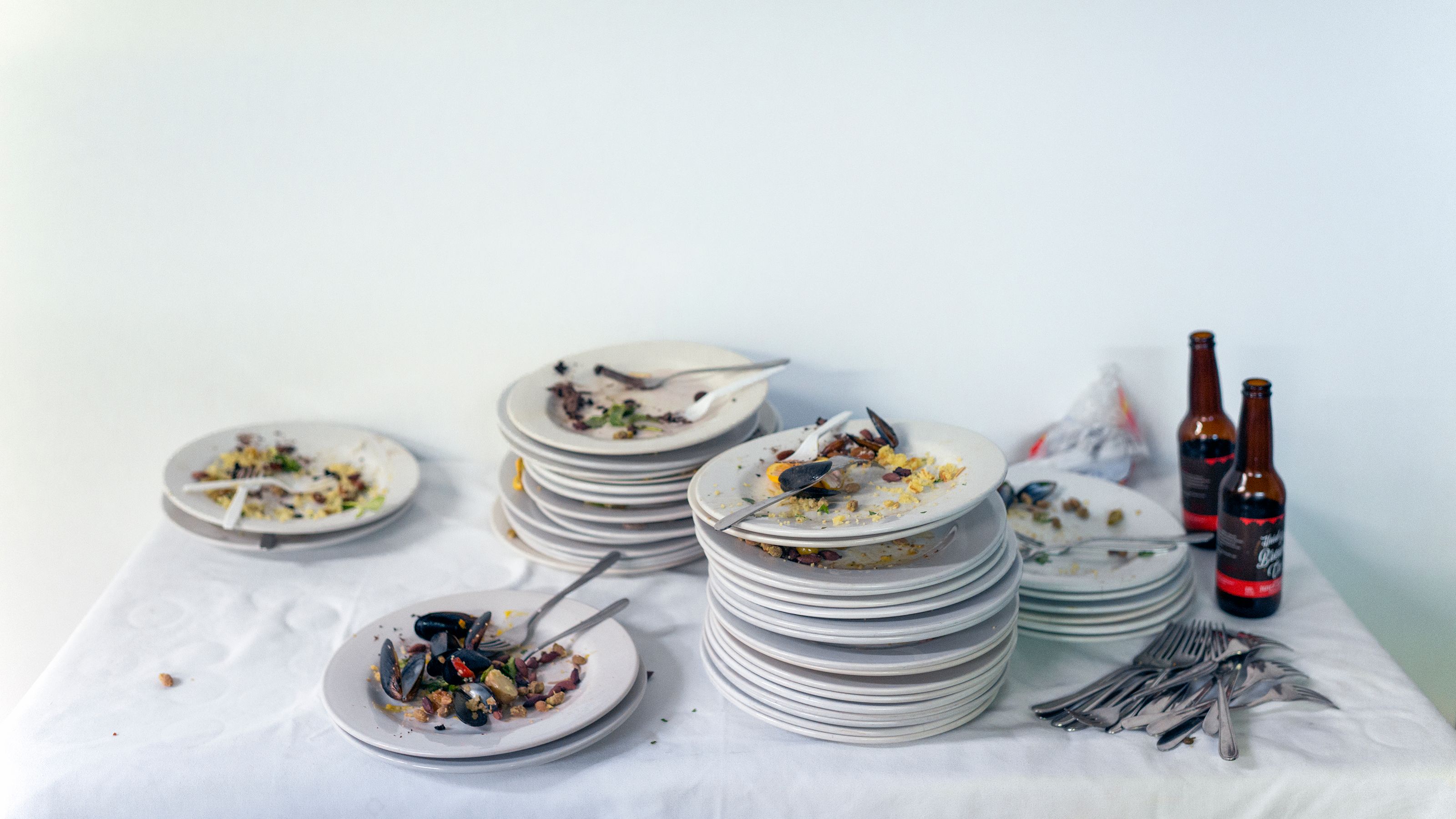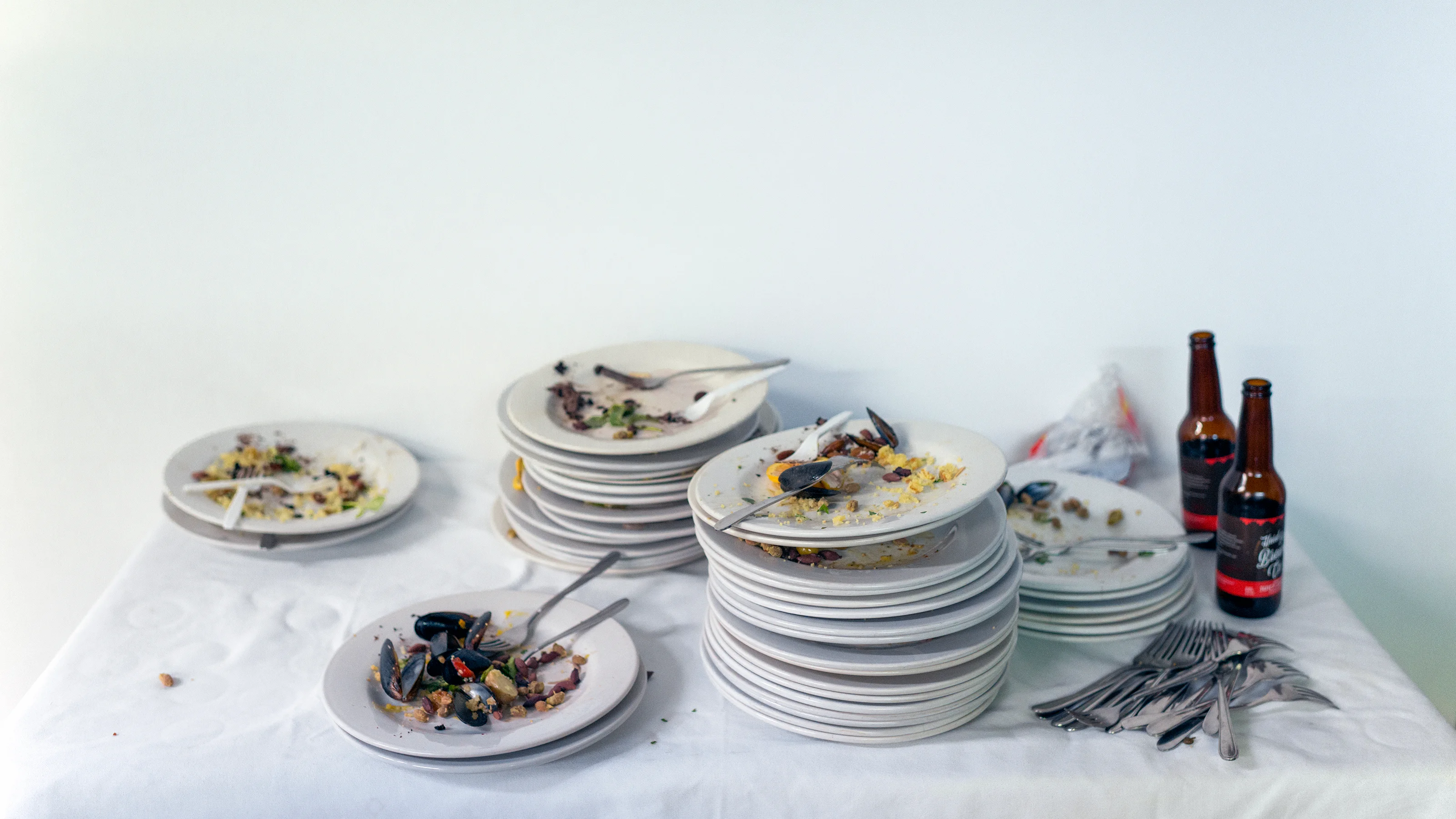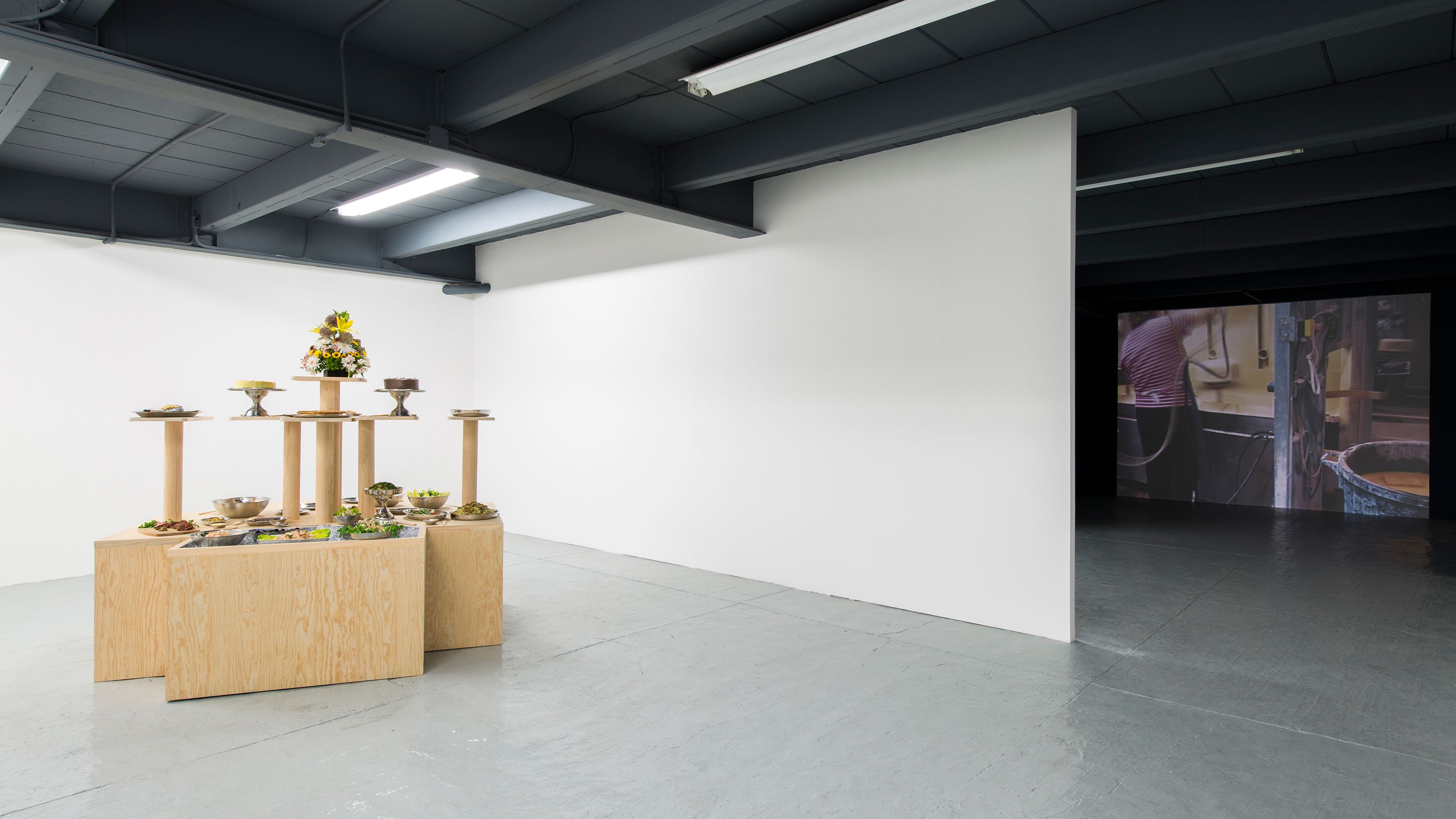 **Every time this work is exhibited the buffet is prepared in collaboration with a local chef. The remains of the meal are left to decay until the end of the show.