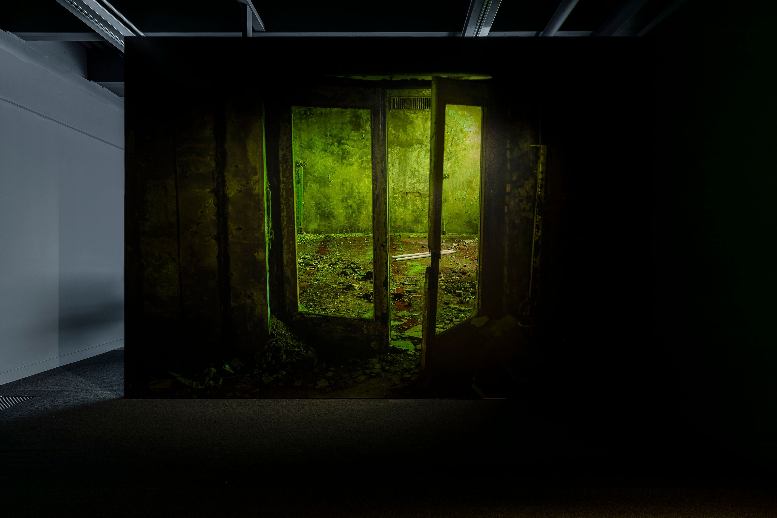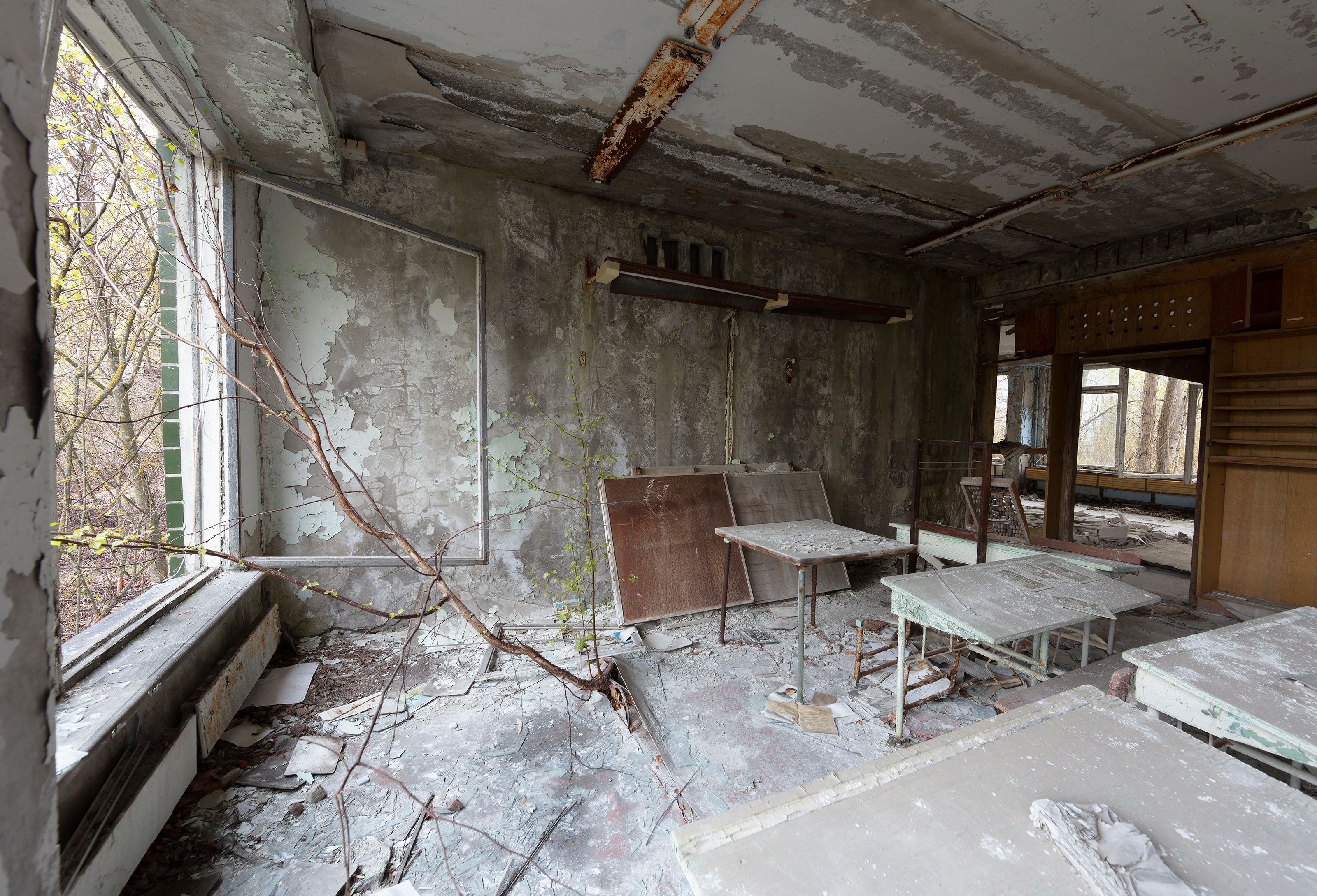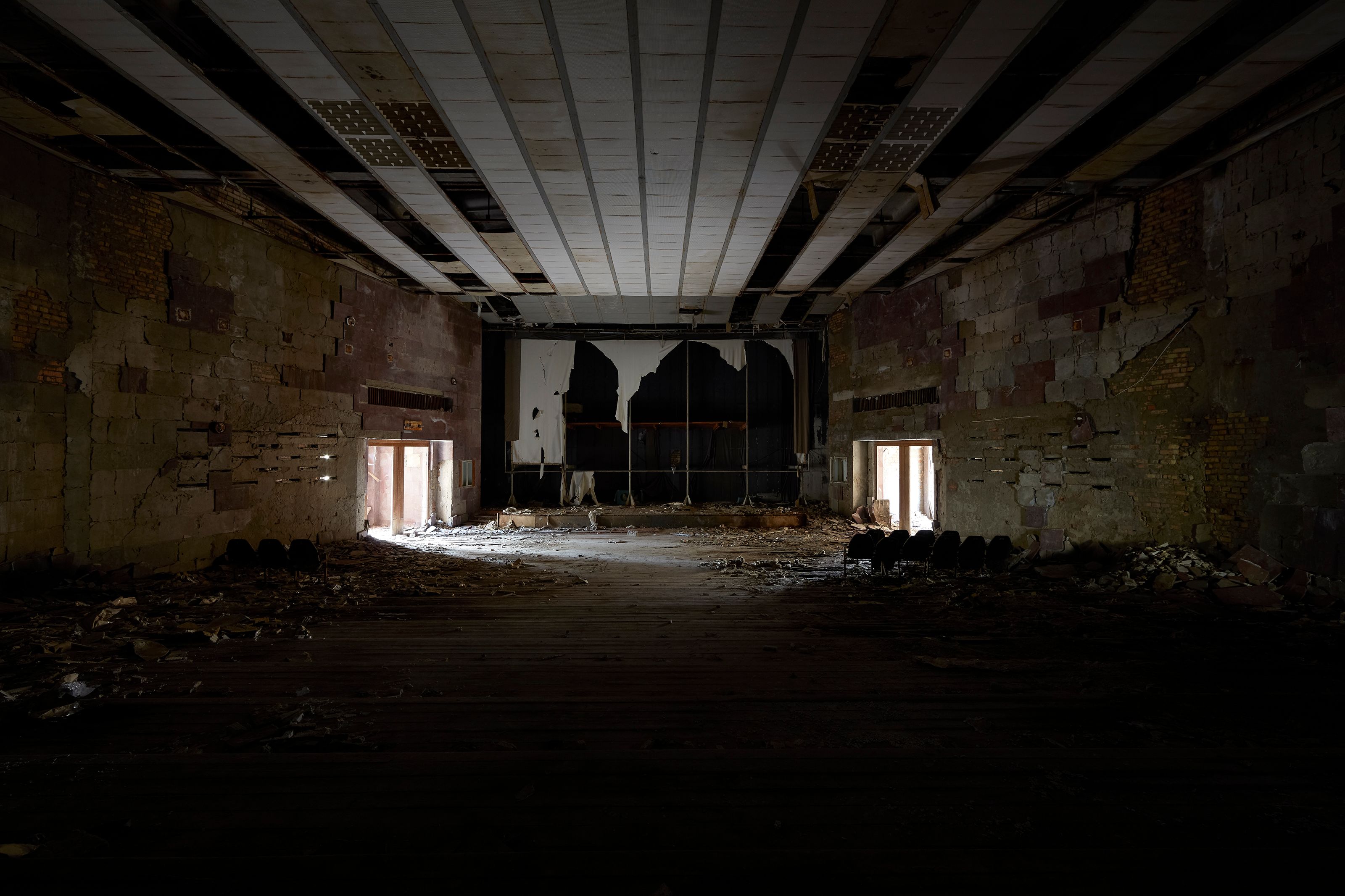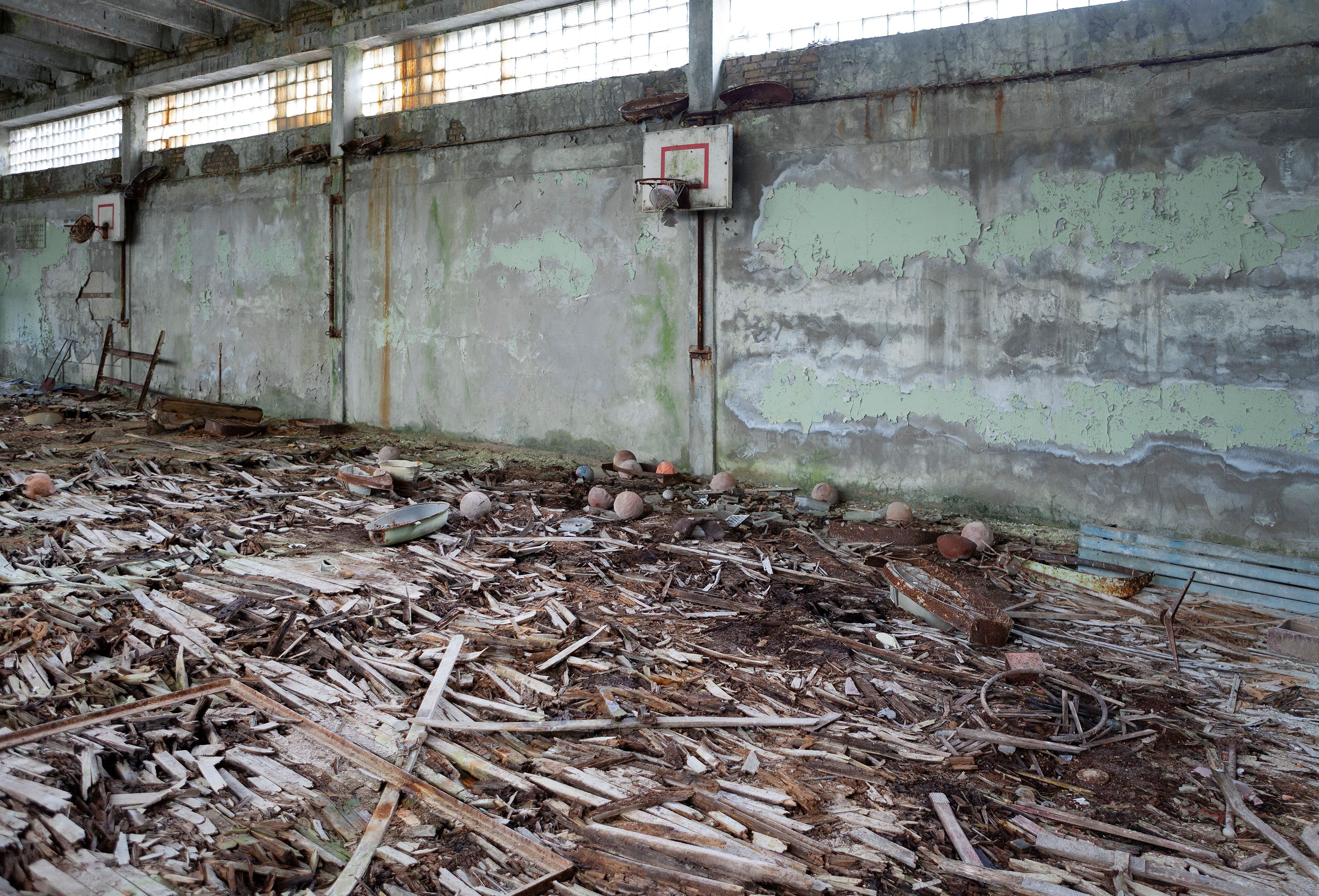 The Zone (Photo) is an extensive set of photographic field-notes that document the lingering paraphernalia and monumental structures left behind in the exclusion zone and the remains of an expired political system and the take-over of spaces by nature and decay.